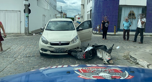 Colisão entre carro e moto deixa mulher ferida no centro da cidade de Coité