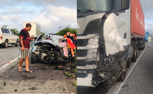Colisão entre carro de passeio e carreta que saiu de Retirolândia deixa duas pessoas mortas na BR 324