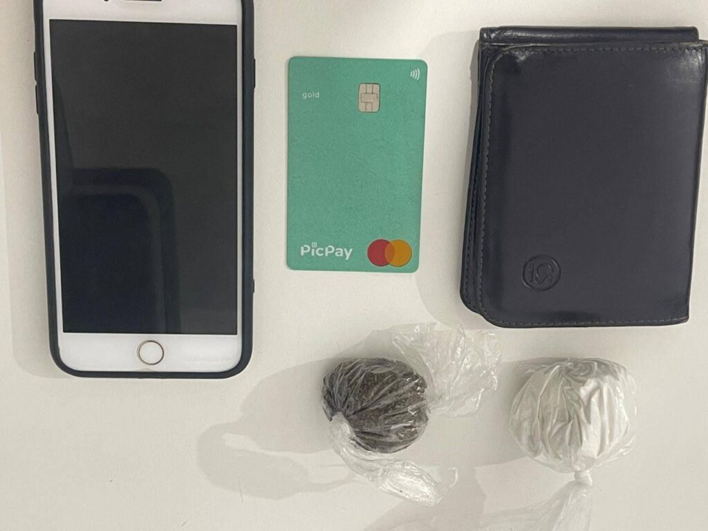 Segundo a guarnição, foi realizado a abordagem e encontrado no bolso do mesmo uma trouxa de cocaína pesando aproximadamente 50 gramas e uma trouxa de maconha pesando aproximadamente 10 gramas. Diante dos fatos foi dada voz de prisão ao indivíduo de iniciais A.N.M., de 35 anos, residente no local da ação e conduzido para a delegacia local onde foi apresentado a autoridade competente gerando uma ocorrência e a motocicleta foi deixada no pátio da 4ª Companhia pois a mesma estava com o pneu dianteiro furado.